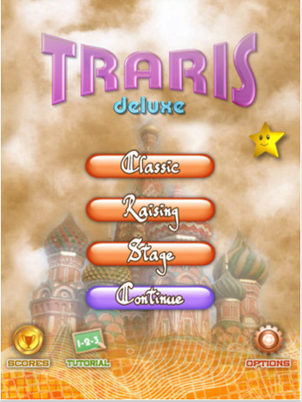 TRARISデラックス(トラリスデラックス)は、テトリス風のパズルゲームです。お城のイラストを背景に色とりどりの落ちてくるブロック形を変えたり組み合わせを工夫して、1列そろったら、ブロックが崩れてスコアポイントになります。